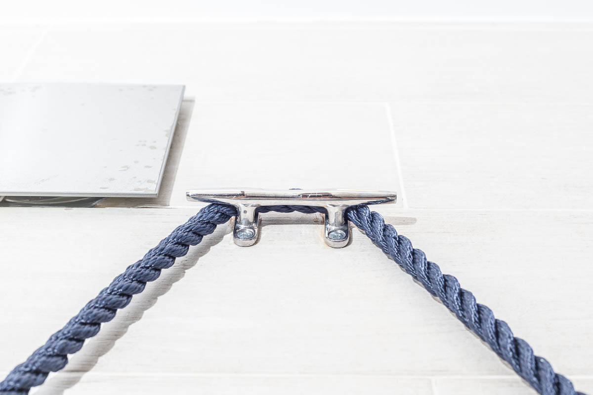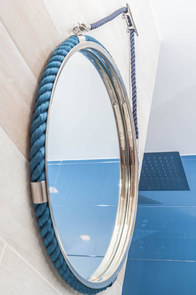 ☯ The mirror would be a nice accessory for yacht and boat lovers! The Yacht accessories used to make this unique piece are blue ropes and cleat – the metal stand hanging from the wall. Wall mounting brackets (screws and dowels) are included with the mirror.