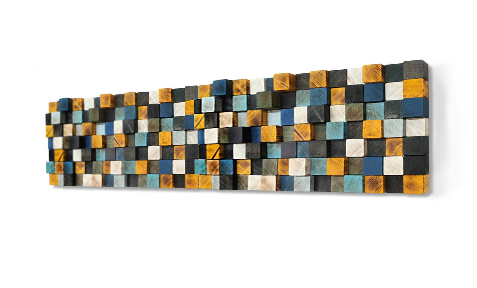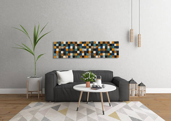 Colorful Wall Decor, Wooden Squares Wall Art, Colorful Wall Art