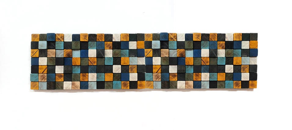 This unique wood mosaic is made with our own hands in our workshop from natural pine tree. Because of the handmade nature of the products, small variations may occur. We take custom orders, so please feel free to contact us if you have special requests about the sizing and your choice of color.