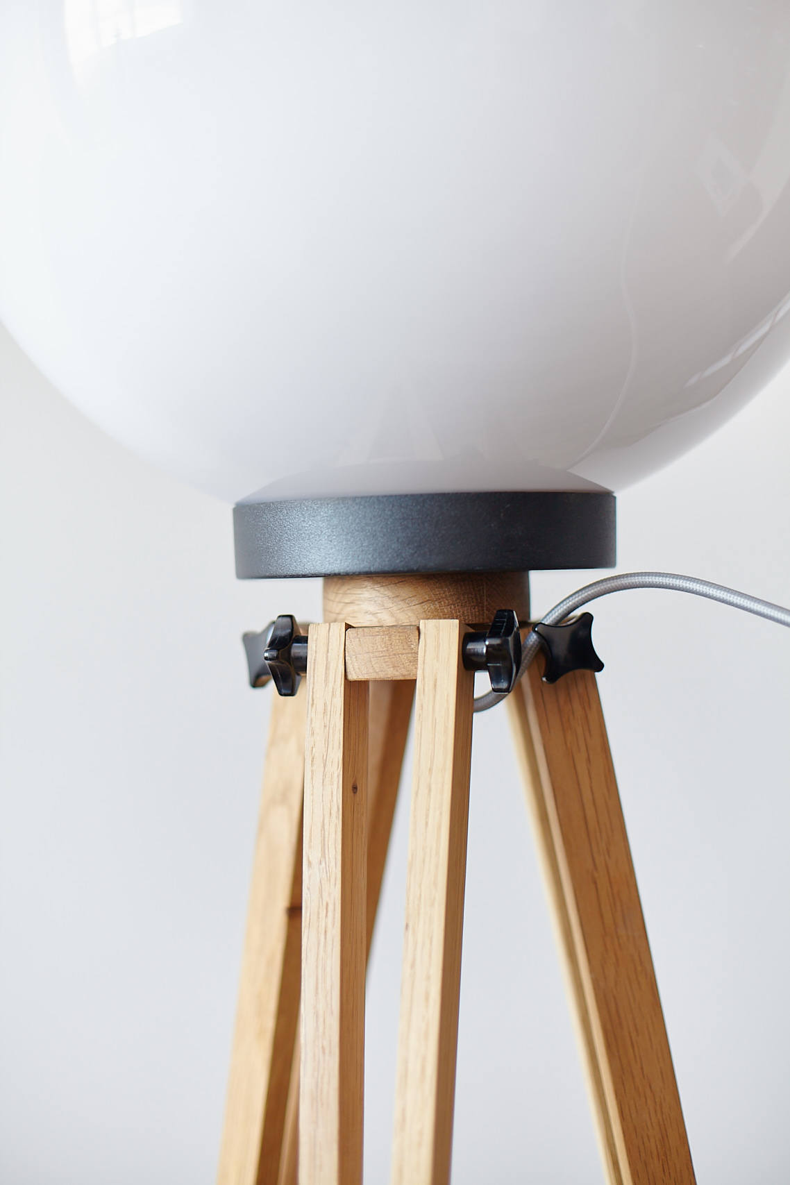 Feel free to choose the base of the lamp: oak (light variant) or pine (dark version) and if you’d like, for the ball we can place warm or cold light on the bulb. The textile braided cable can come in gray, black or as per the customer’s choice – write your desired color in the order’s note.