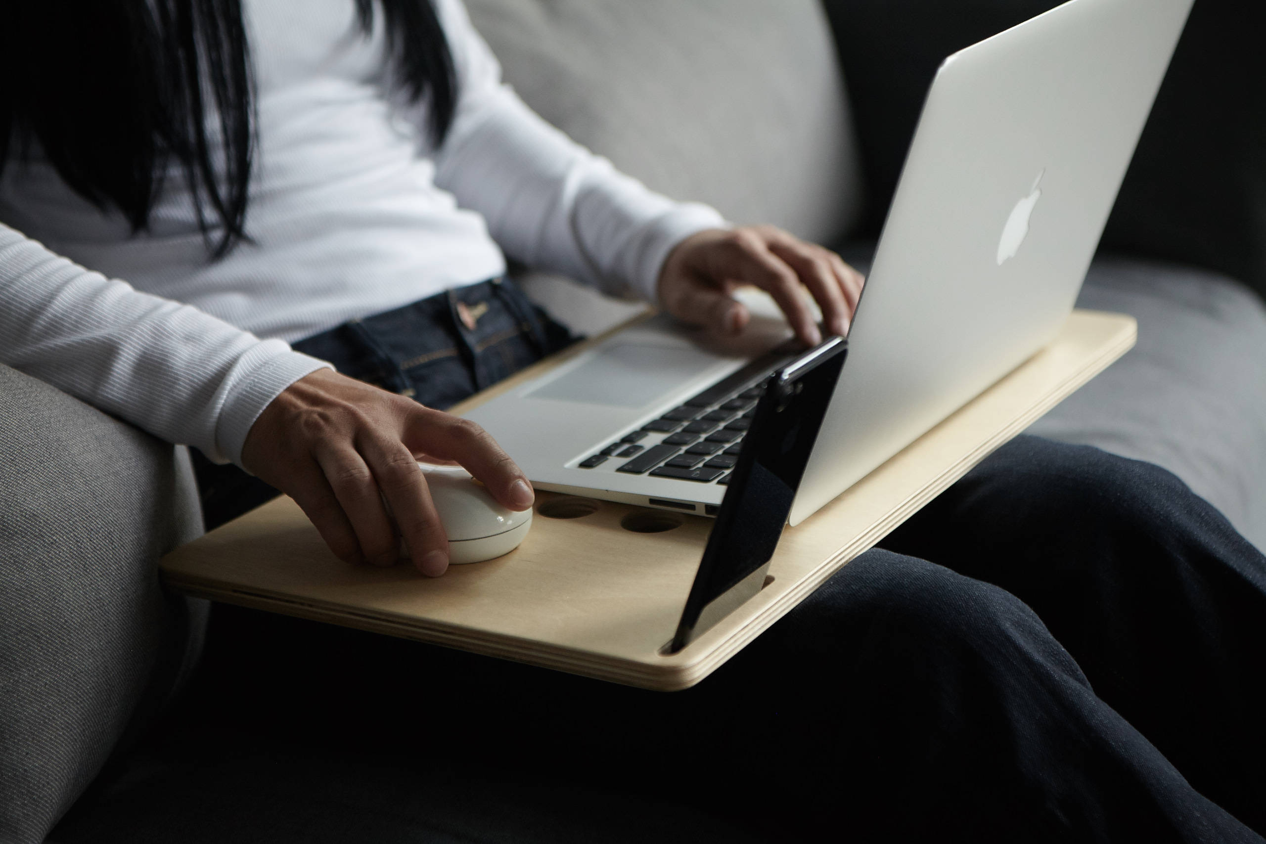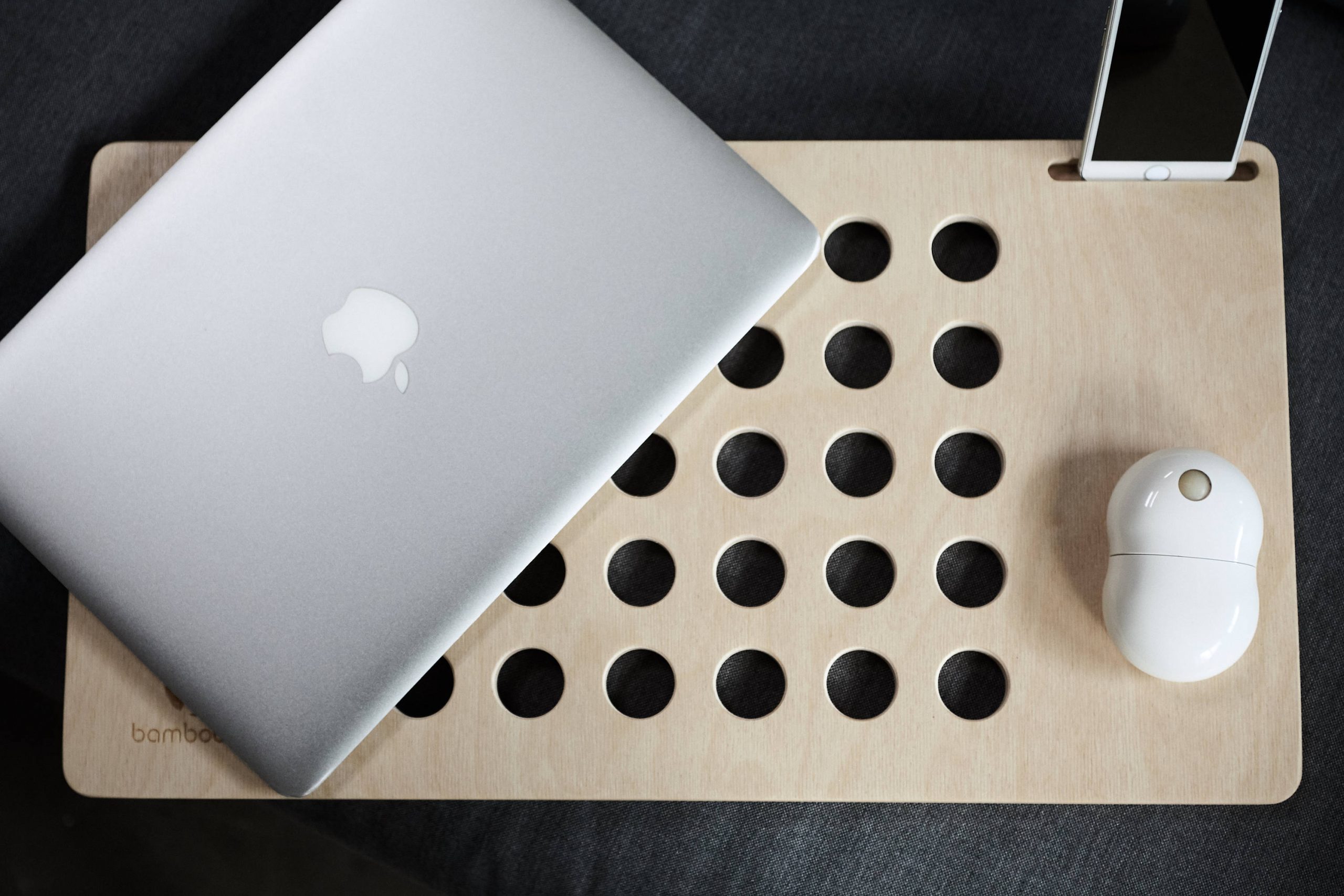 ☯ We designed this branded portable lap desk for anyone who works or plays on the go. It is a perfect gift for the tech lover! It is lightweight, very strong, and it will disperse the heat from your laptop. The holes (air ventilation) in our lapdesk are milled, hand-sanded, and polished to save you knees and your laptop from overheating. There is a place where you can put your smartphone as well.