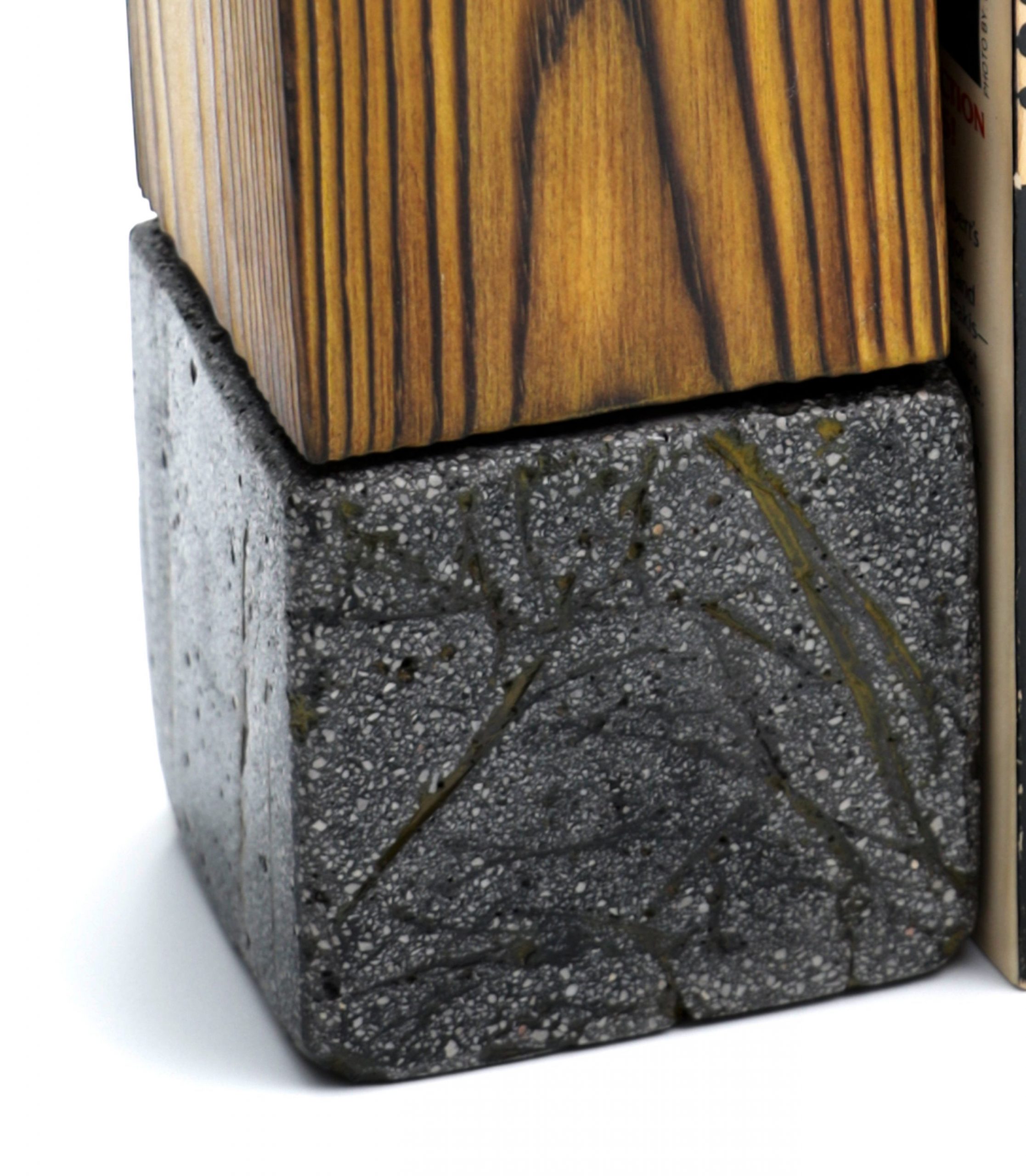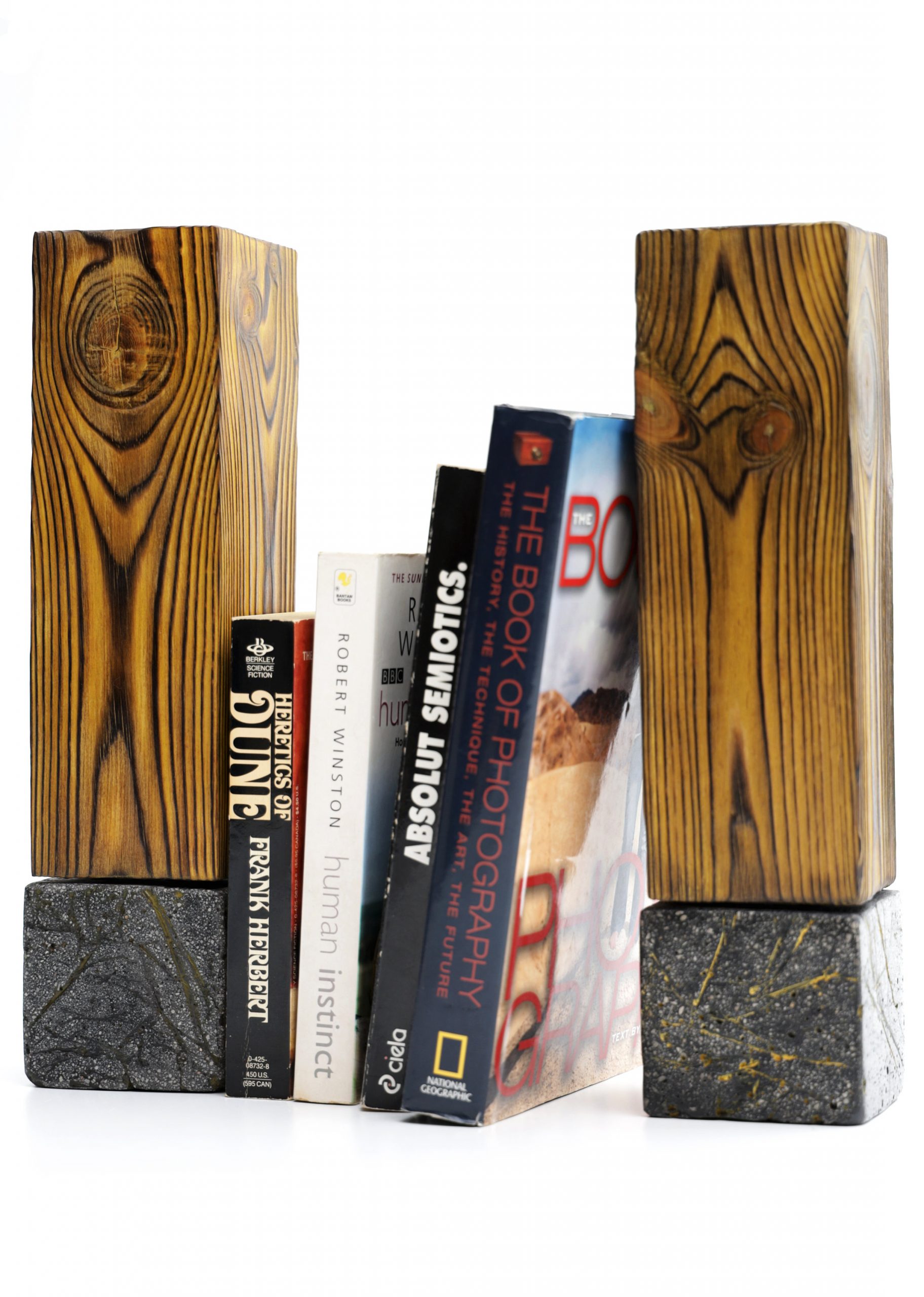 ☯ A unique piece – beautiful wooden Bookend! Perfect for decorating your bedroom, living room or office. It is handmade with a passion and great attention to details in our workshop from natural aged wood and concrete.