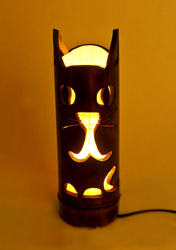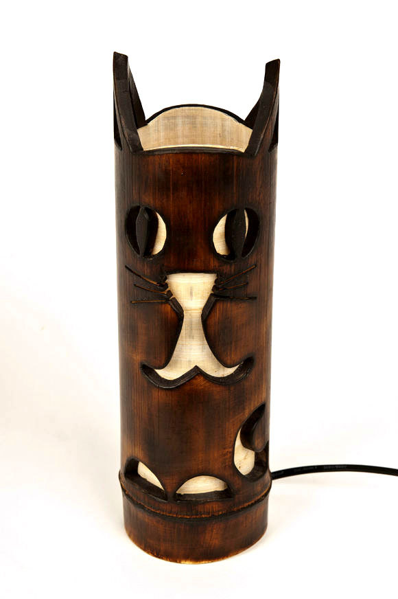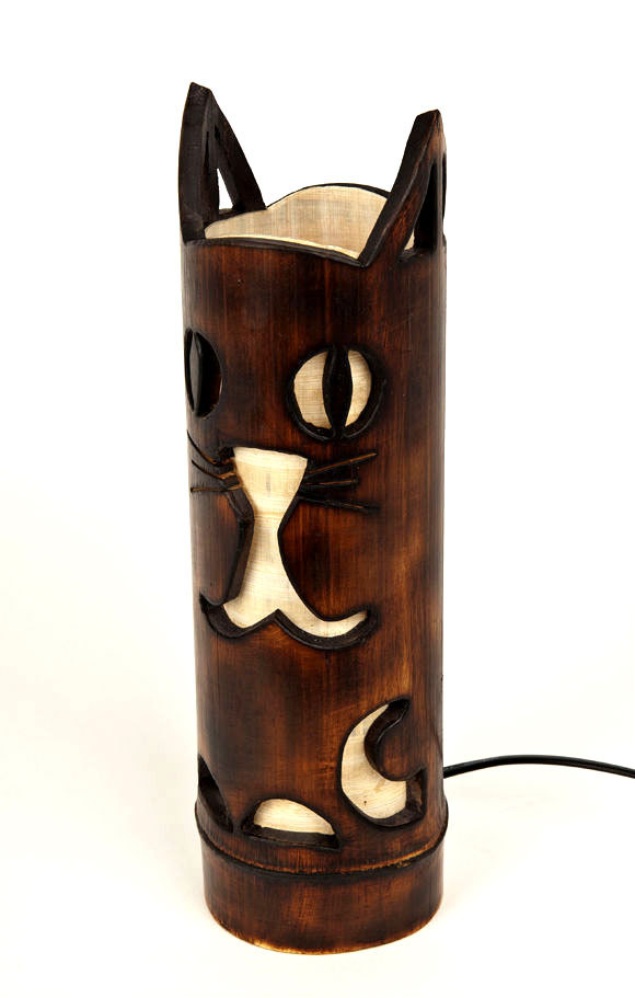 ☯ This funny bamboo lamp is handmade with a passion and great attention to details in our workshop from a natural, fire cured bamboo pole and papyrus, and creates a natural and exotic atmosphere. There are two cats on the opposite side of the lamp.