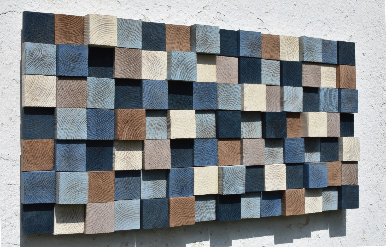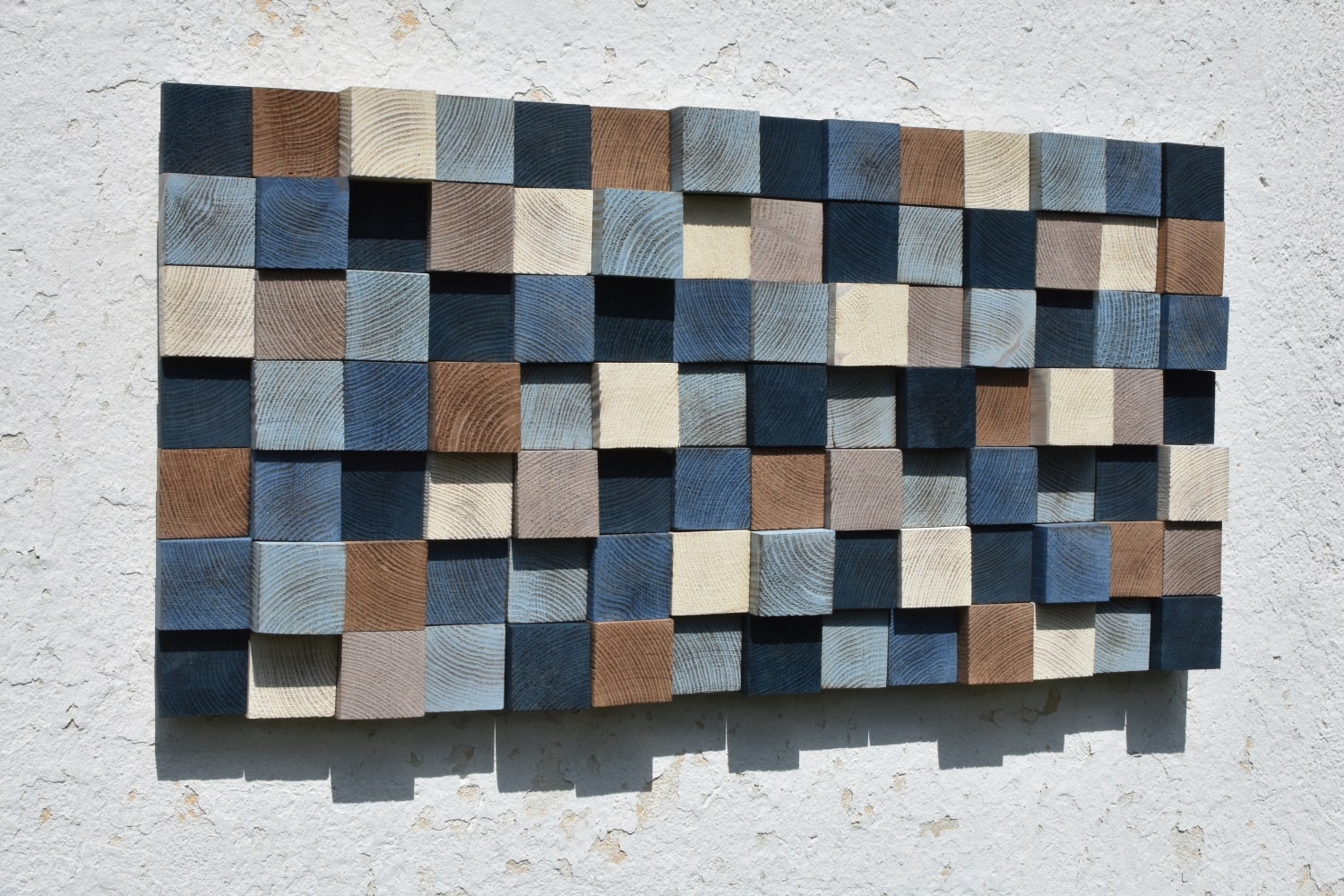 This unique wood mosaic is made with our own hands in our workshop from natural pine tree. Because of the handmade nature of the products, small variations may occur. We take custom orders, so please feel free to contact us if you have special requests about the sizing and your choice of color.