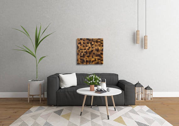 ☯ This unique wood mosaic is made with our own hands in our workshop from natural pine tree. Because of the handmade nature of the products, small variations may occur. We take custom orders, so please feel free to contact us if you have special requests about the sizing and your choice of color.