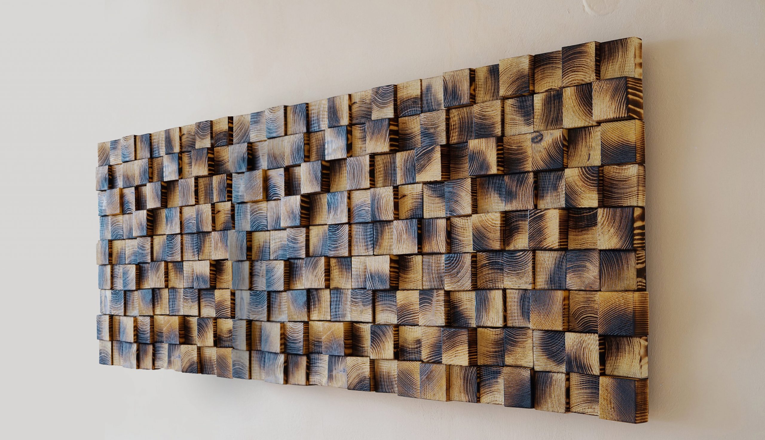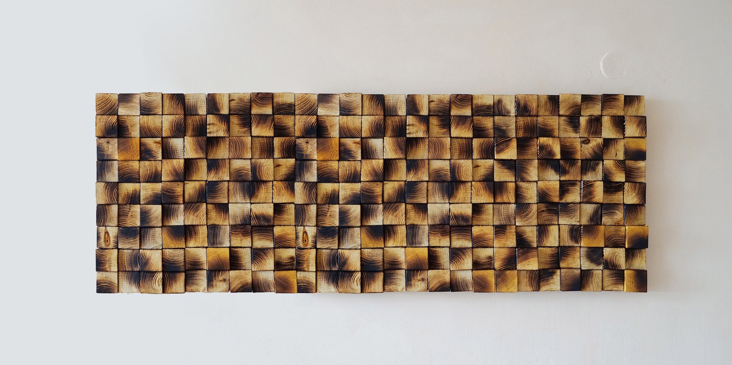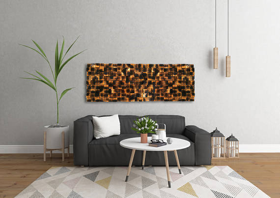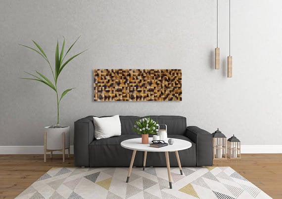 ☯ This unique wood mosaic is made with our own hands in our workshop from natural pine tree. Because of the handmade nature of the products, small variations may occur. We take custom orders, so please feel free to contact us if you have special requests about the sizing and your choice of color.