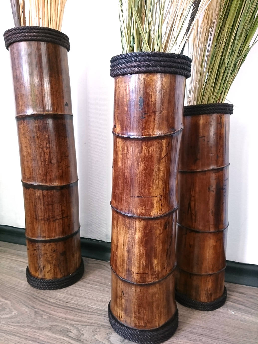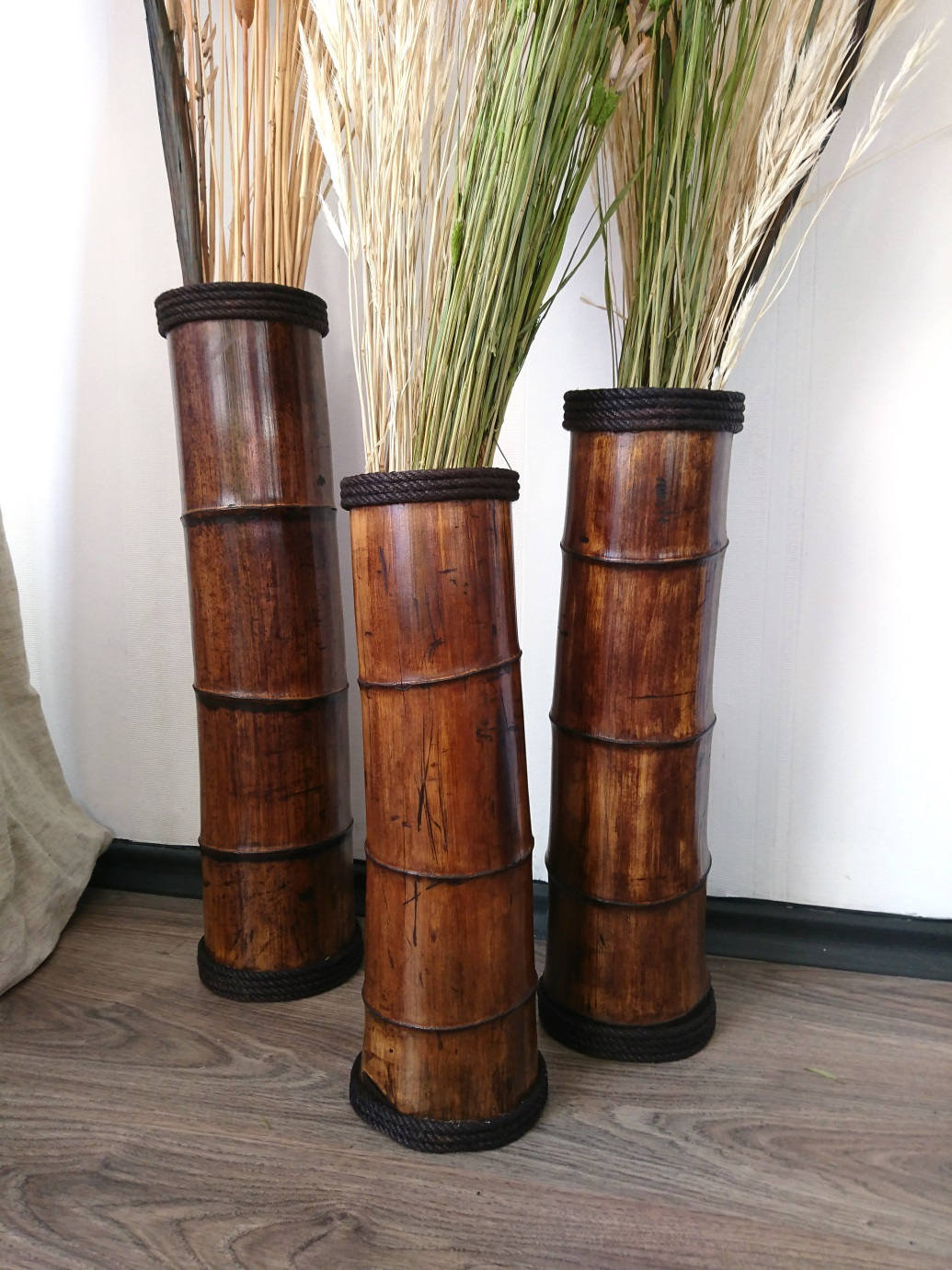 ☯ A unique piece – beautiful SET OF THREE! bamboo vases.Perfect for decorating your bedroom, living room or any open art space. It is handmade with a passion and great attention to details in our workshop from a natural bamboo pole and creates a natural and exotic atmosphere.