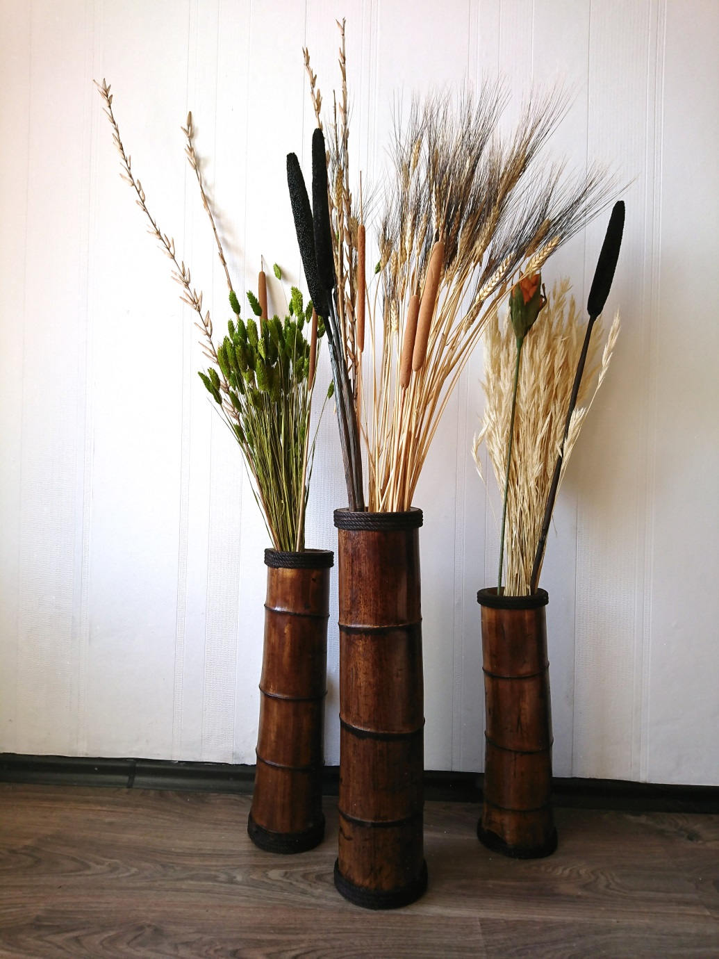 Rustic Wedding Vases, Wood Floor Vases, Bamboo Wedding Vases