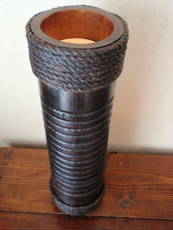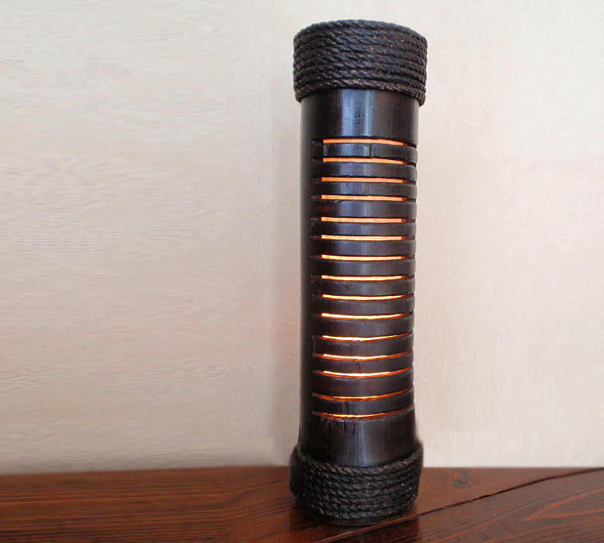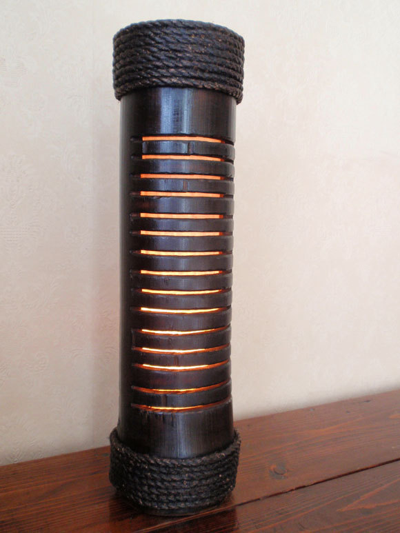 ☯ This stylish bamboo lamp is handmade with a passion and great attention to details in our workshop from a natural, fire cured bamboo pole, decorated with a lead tape and papyrus, and creates a natural and exotic atmosphere.