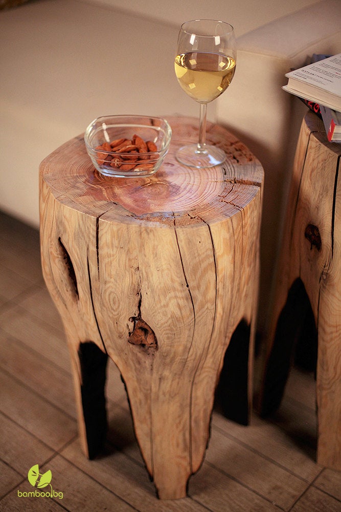 ☯ A versatile piece, perfect for use as a side table or stool, bedroom night stand or end table, bath shelves or seating, plant stand, pedestal for art, you name it…. Just rotate the piece and choose your favorite side, for each side makes it look like an entirely different piece! Suitable for indoor and outdoor use. These trees have been gleaned from tree removal projects in Bulgaria, Eastern Europe, according to sustainable felling planned years ahead, so none of the trees we use are cut down for the purpose of making our furniture.