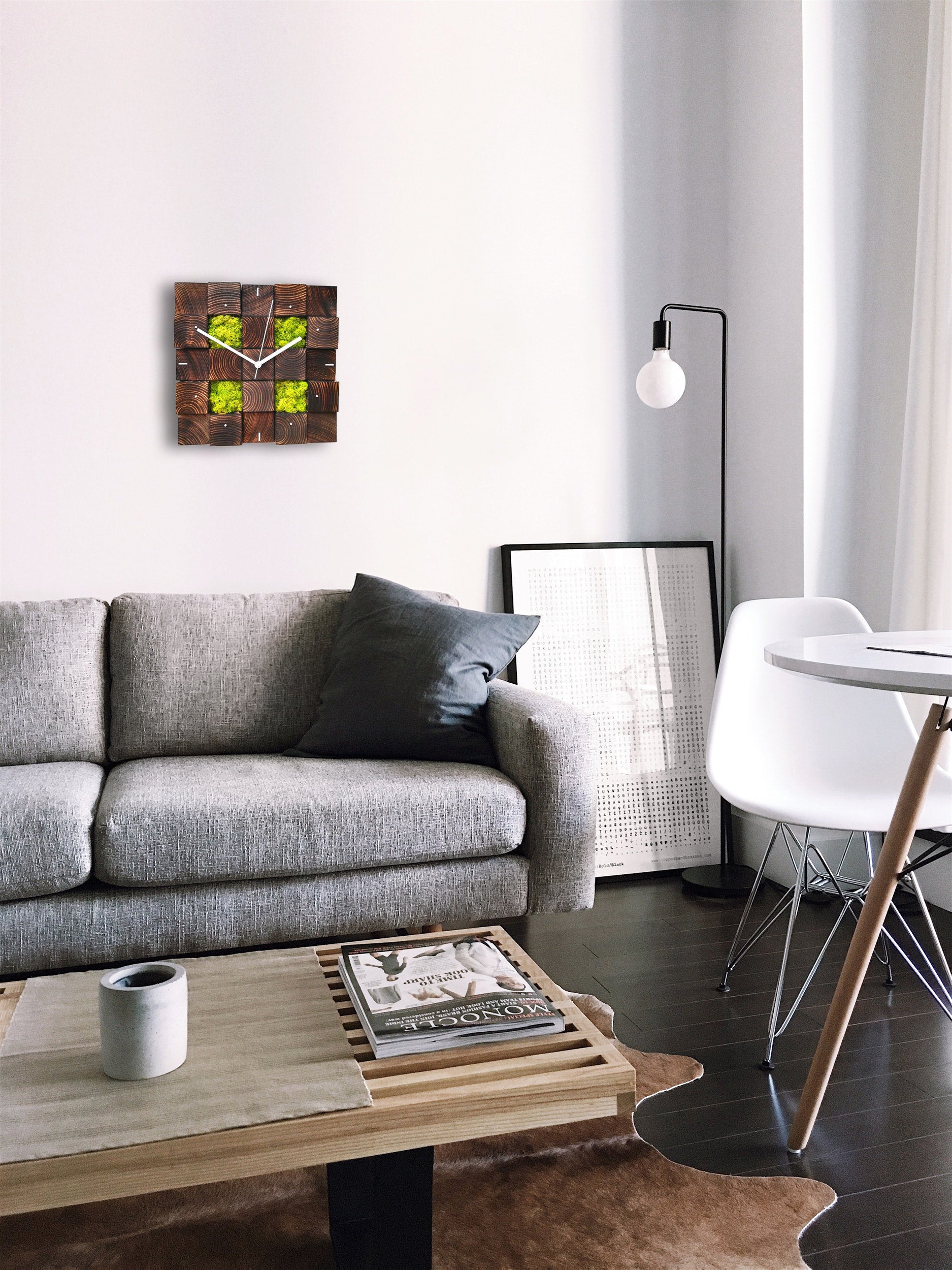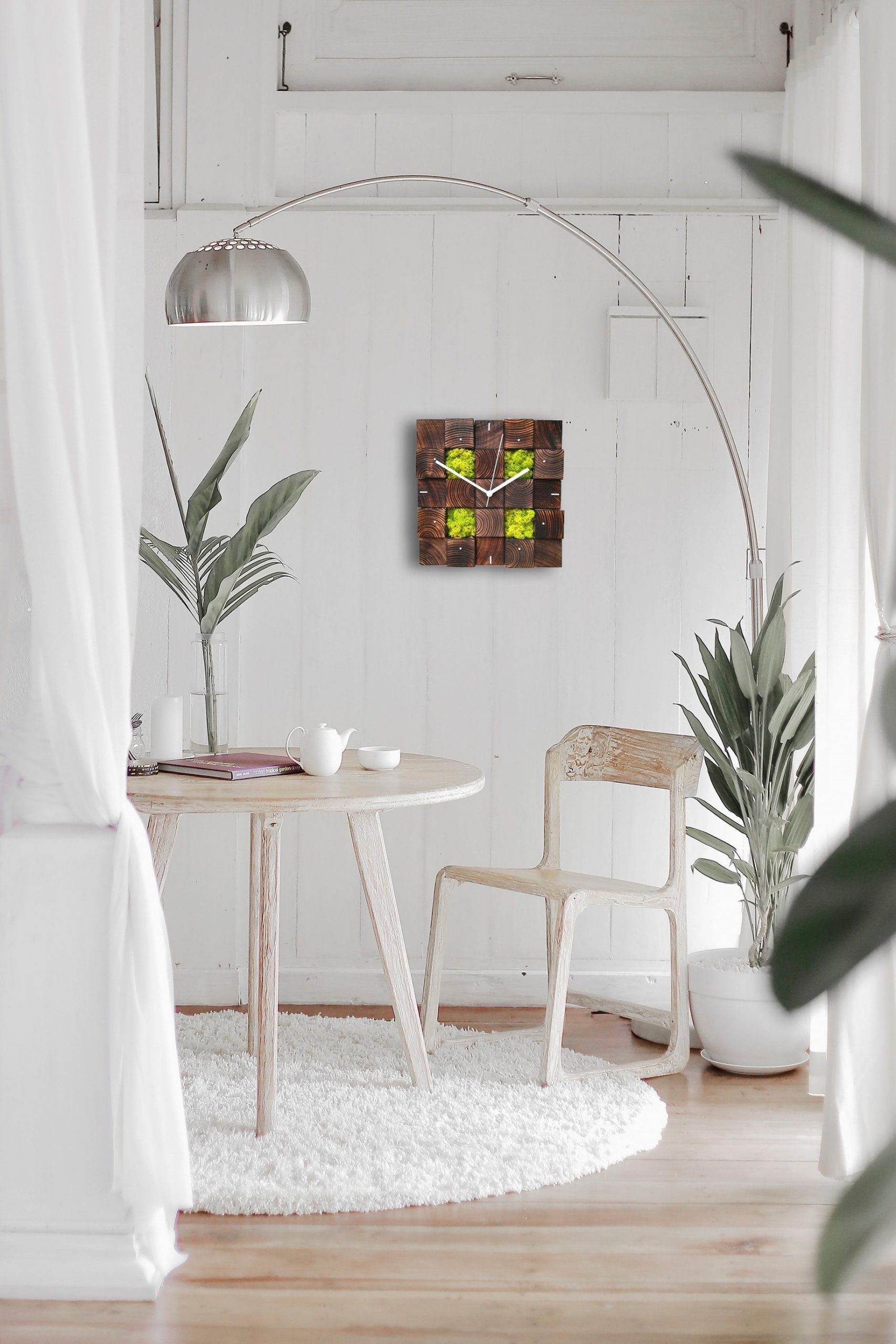 Wall Clock, Moss Decor, Rustic Clock, Silent Clock, Square Clock, Brown Clock, Unique Wall Clock, Rustic Wall Clock, Living Room Clock