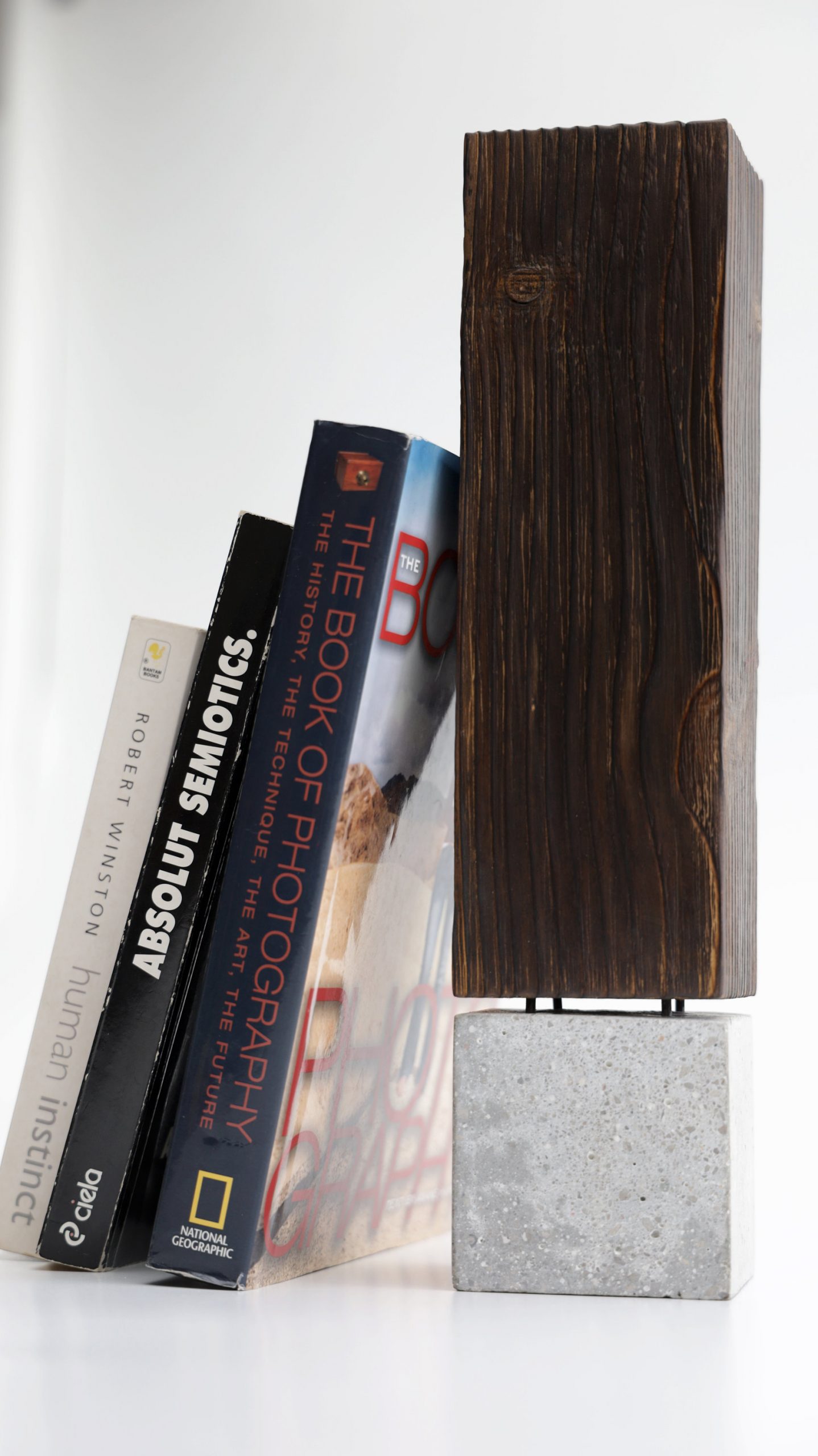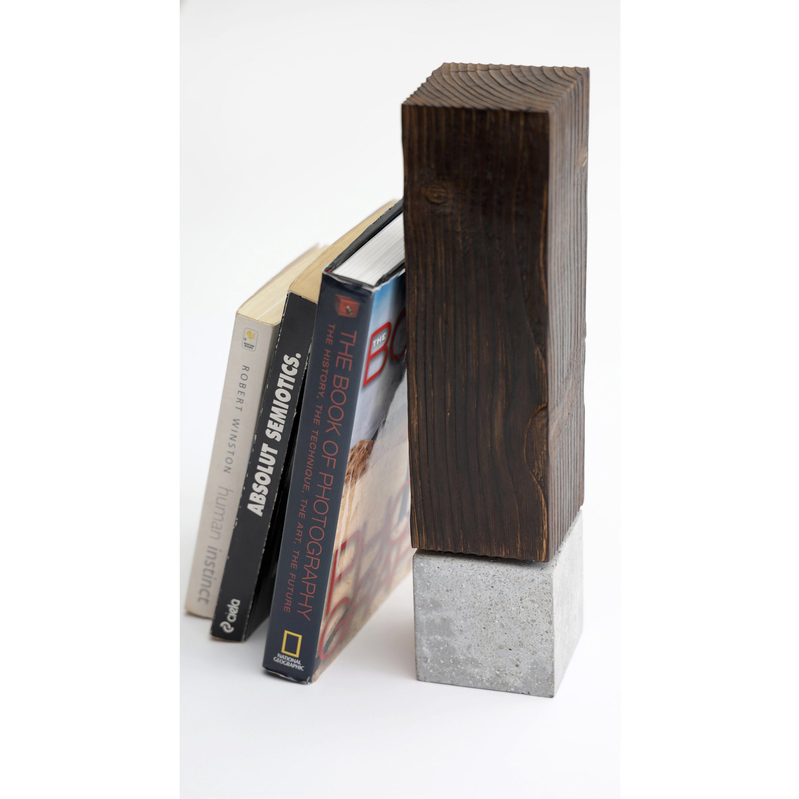 ☯ A unique piece – beautiful wooden Bookend! Perfect for decorating your bedroom, living room or office. It is handmade with a passion and great attention to details in our workshop from natural aged wood and concrete.