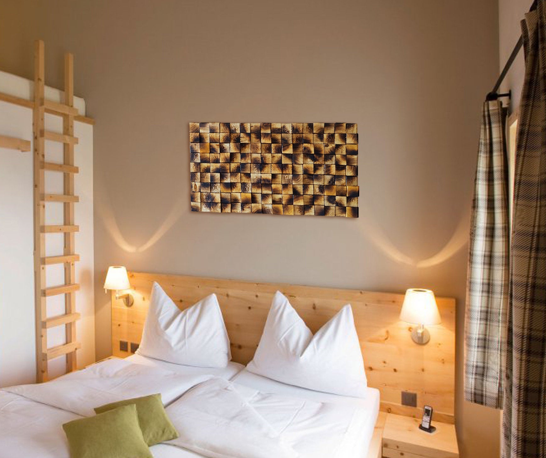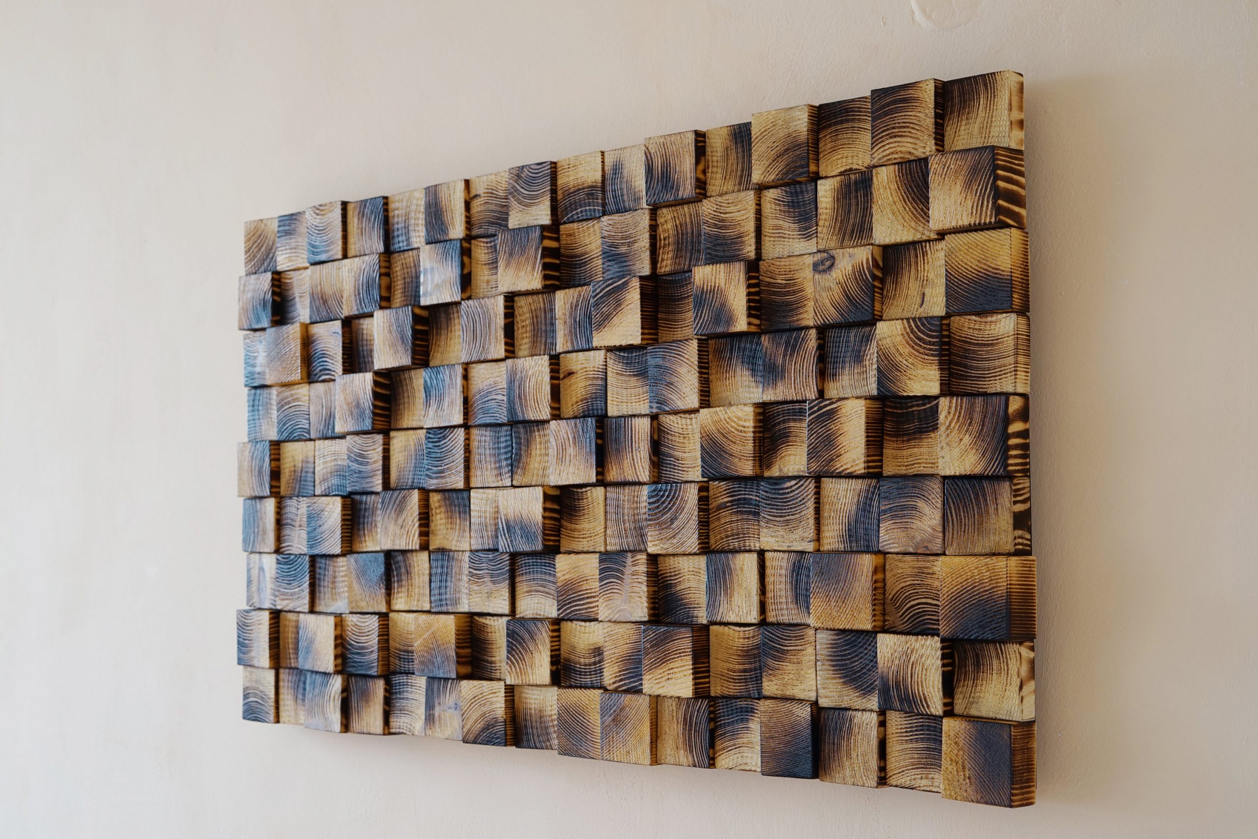 ☯ This unique wood mosaic is made with our own hands in our workshop from natural pine tree. Because of the handmade nature of the products, small variations may occur. We take custom orders, so please feel free to contact us if you have special requests about the sizing and your choice of color.
