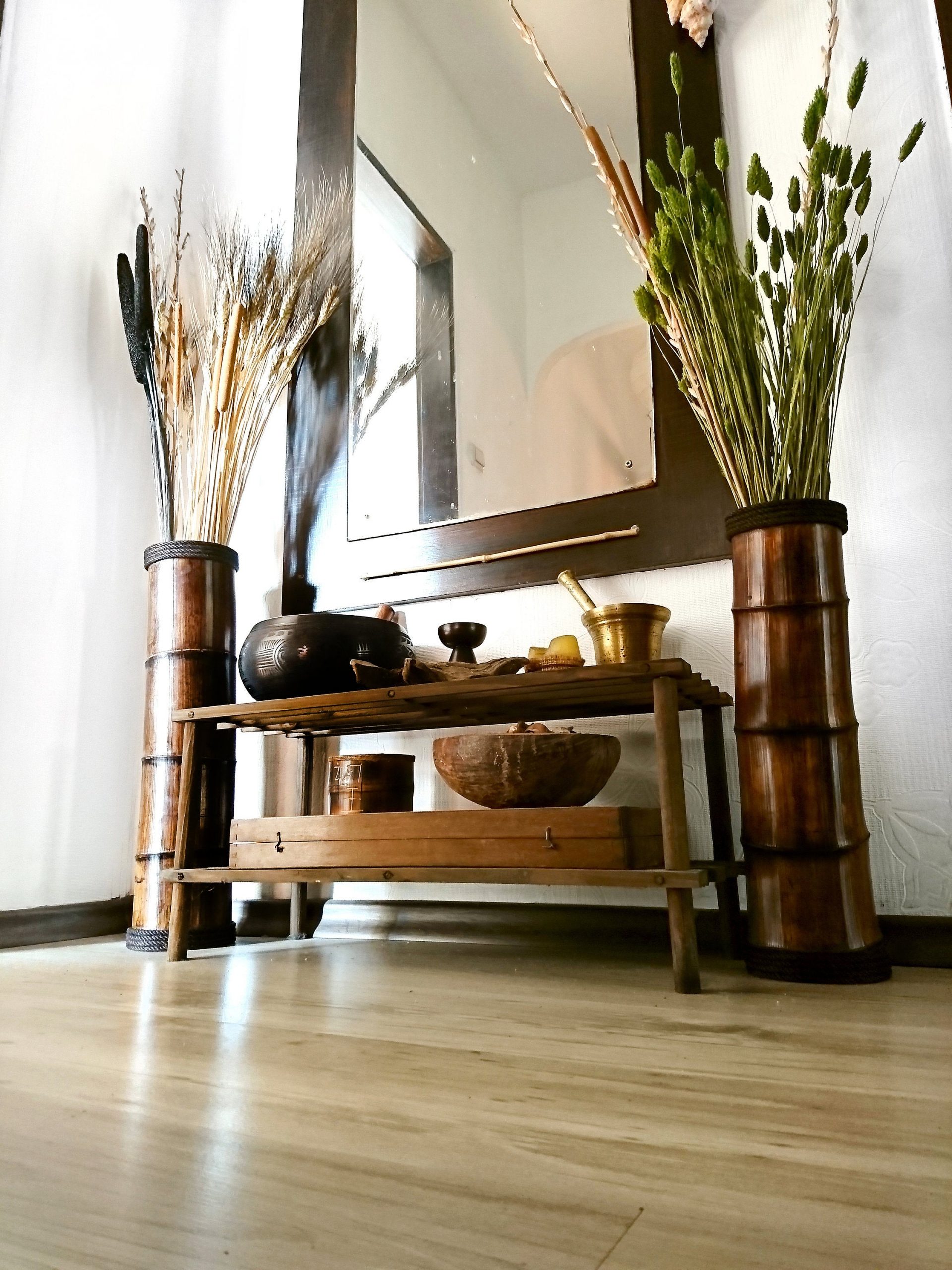 ☯ A unique piece – beautiful SET OF TWO! bamboo vases.Perfect for decorating your bedroom, living room or any open art space. It is handmade with a passion and great attention to details in our workshop from a natural bamboo pole and creates a natural and exotic atmosphere.